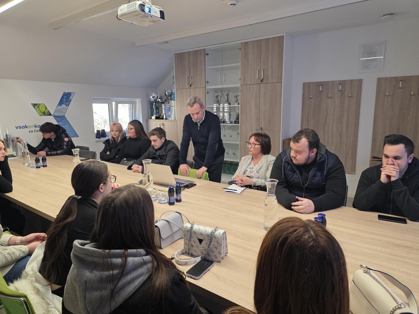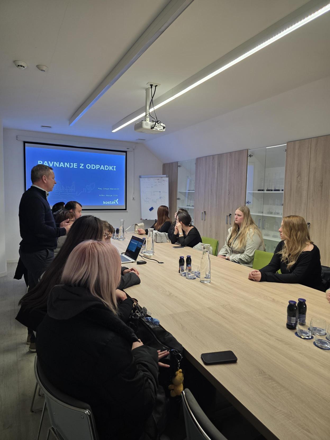Študentje prvega letnika ekonomist sodelujejo v ekološkem projektu komunalni odpadki v gospodinjstvih in ponovna uporaba. Pri vajah iz statistike smo se poglobljeno lotili statistične raziskave tega področja, oblikovali anketo za gospodinjstva, analizirali rezultate in ugotavljali finančni aspekt dejavnosti. V sredo, 18.2.2026 smo obiskali Komunalo Krško, kjer nas je sprejel direktor, g. Gregor Klemenčič. Predstavil nam je področje ravnanje z komunalnimi odpadki in opozoril na težave ter zakonske omejitve s katerimi se srečujejo. Študentje so sodelovali v pogovoru in predlagali konkretne rešitve. V socialnem podjetju Knof nas je sprejela direktorica ga. Mojca Žganec Metelko, nam razkazala ponudbo tekstila, pohištva in drobnih predmetov za opremo doma. Podjetje se ukvarja tudi z inovativnimi rešitvami ponovne uporabe iz odpadnega blaga, plastike in lesa. Njihovi produkti so tržno zanimivi. Študentje so kasneje generirali inovativne ideje s področja varovanja okolja in prostega časa mladih. Obisk pomeni priložnost spoznati delovanje podjetja, korist za družbo in posameznika, upoštevanje zakonodaje za posamezno področje ter možnost zaposlitve v lokalnem okolju.