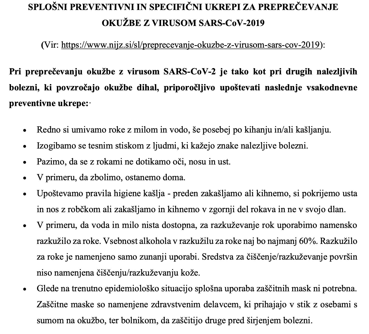 Skladno z njihovimi objavami in navodili bomo tudi ustrezno ukrepali ob morebitnem pojavu virusa pri nas.